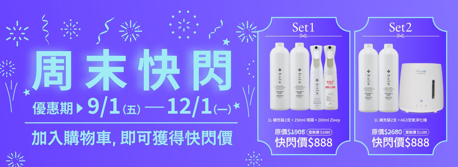 周末快閃套裝 (9/1 Fri - 12/1 Mon )