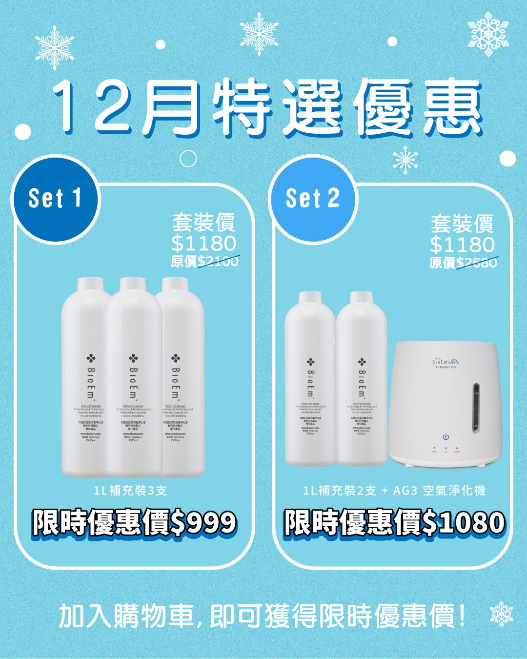 BioEm 1公升補充裝 x2支裝 + AG3 空氣淨化機 1部
