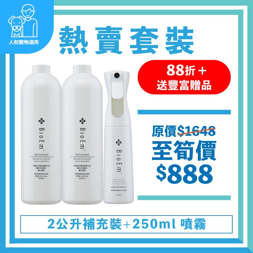 1公升補充裝 (BR1000) x2支裝 +Flairosol空氣消毒淨化液噴霧 (B250)